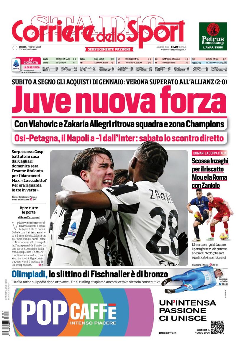 C’è tanto Juventus–Verona sulle copertine odierne dei maggiori quotidiani sportivi nazionali.