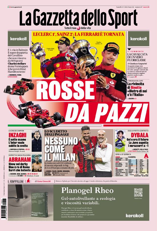 C’è tantissima Formula 1 sulle copertine odierne dei maggiori quotidiani sportivi nazionali.