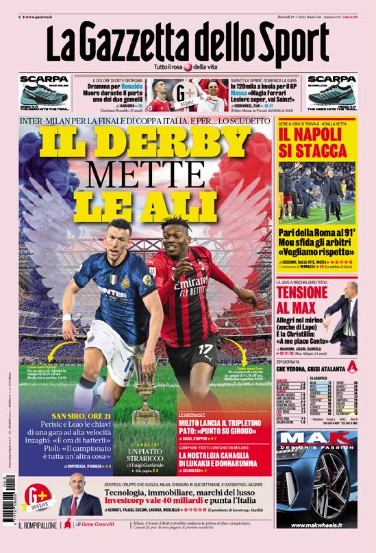 Sono la Serie A, la Coppa Italia e il calciomercato gli argomenti principali delle copertine odierne dei maggiori quotidiani sportivi nazionali.