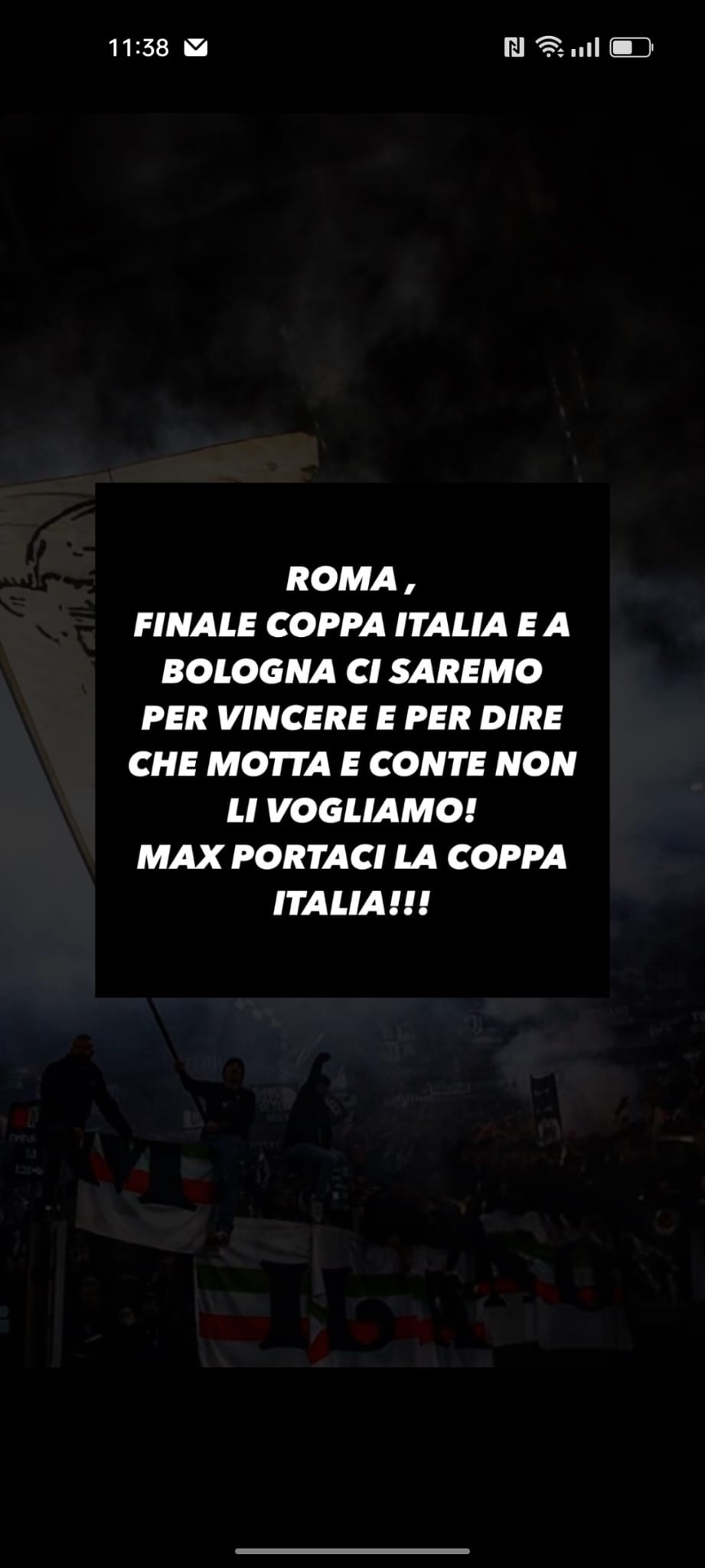 “Roma, finale Coppa Italia e a Bologna ci saremo per vincere e per dire che Motta e Conte non li vogliamo! Max portaci la coppa Italia!”