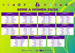 Il campionato prenderĆ il via nel weekend del 4-5 ottobre e si concluderĆ tra il 16 e il 17 maggio 2026. A precederlo sarĆ la Serie A Women’s Cup, in programma dal 23 agosto, competizione che rappresenta una novitĆ assoluta nel panorama femminile e che ha giĆ visto il sorteggio dei gironi per la fase iniziale. La Juventus Women, vincitrice in carica, inizierĆ con la sfida contro il Sassuolo.